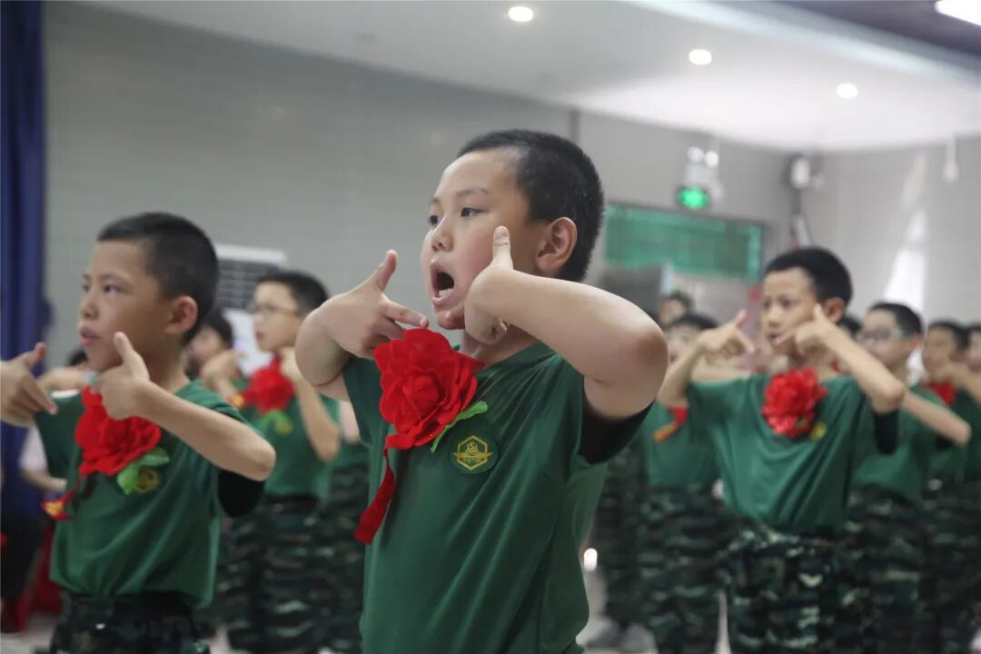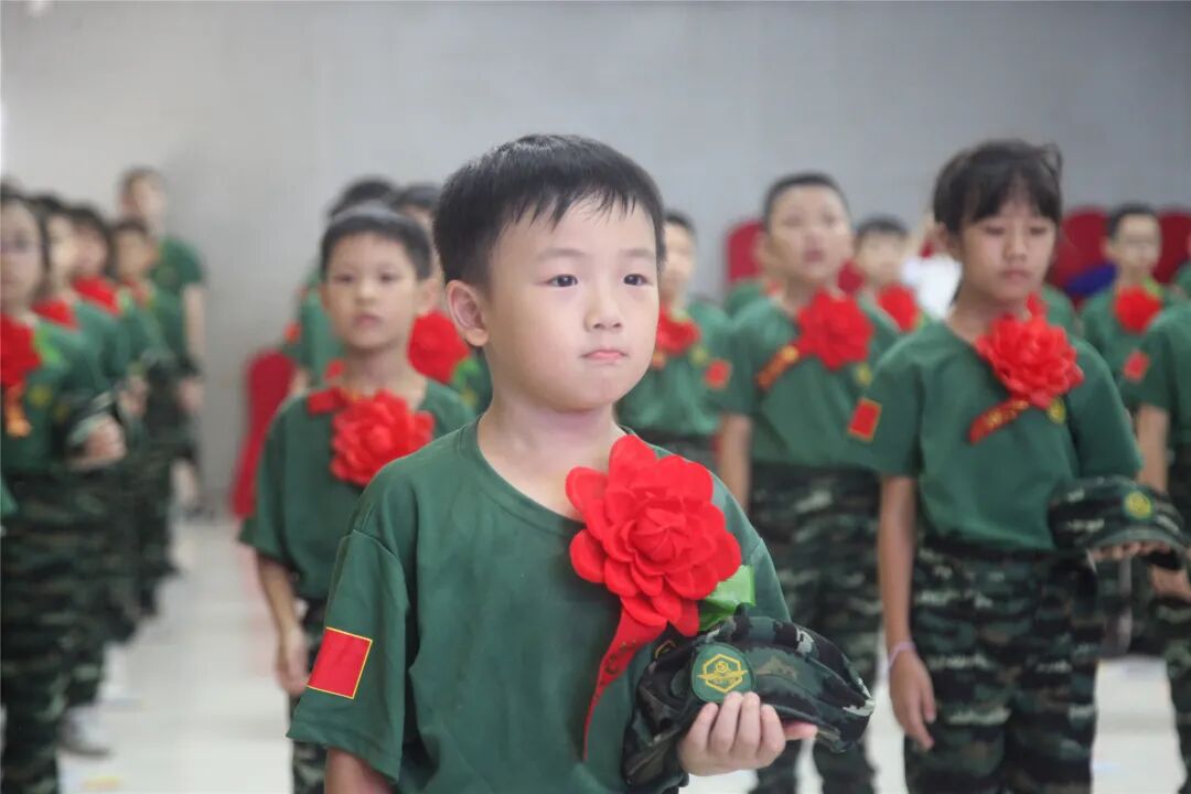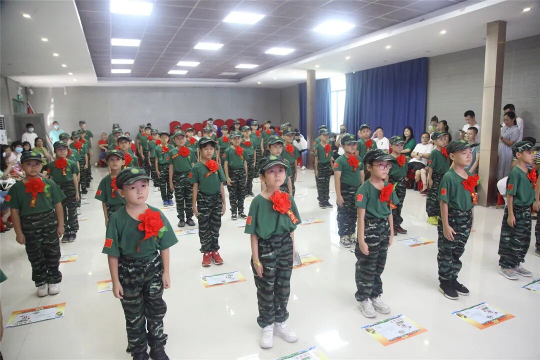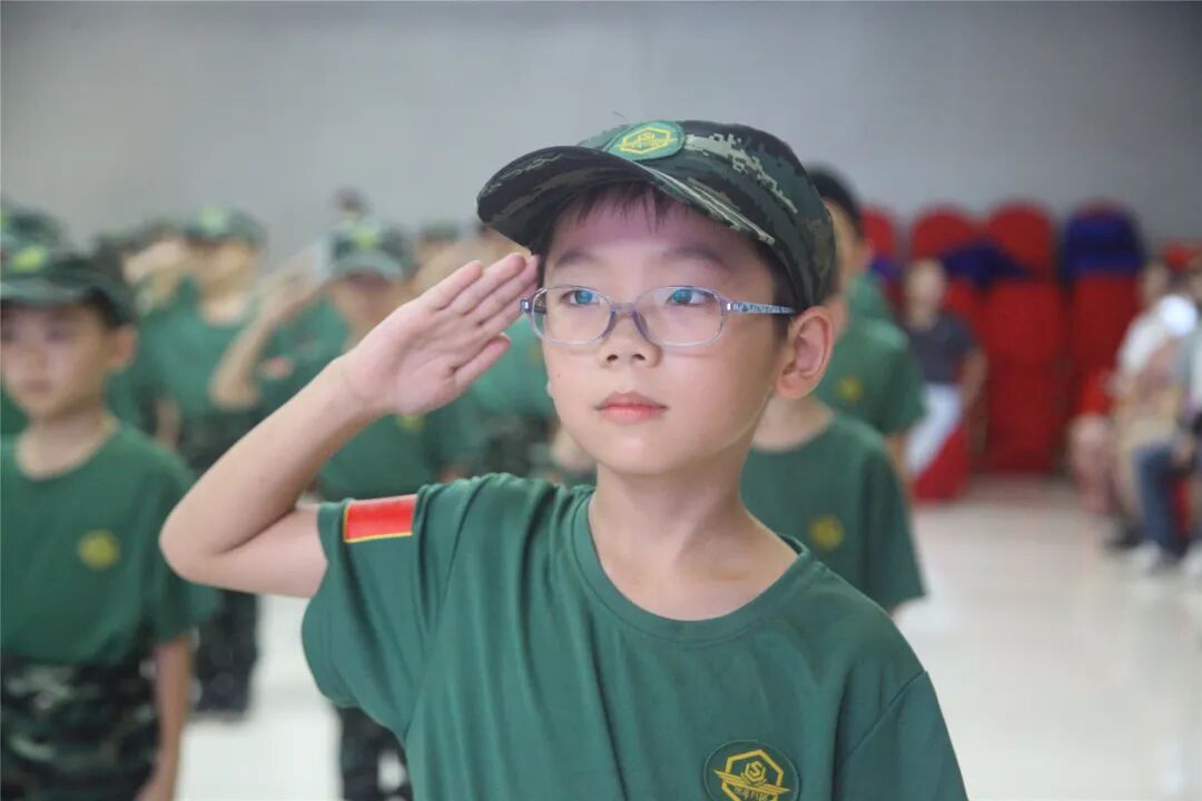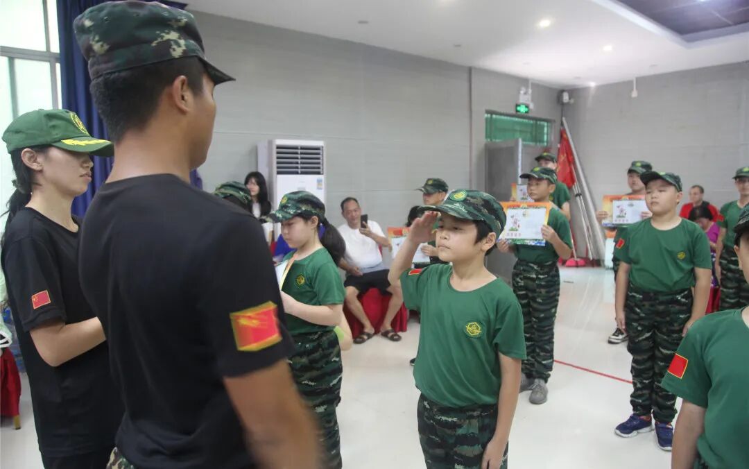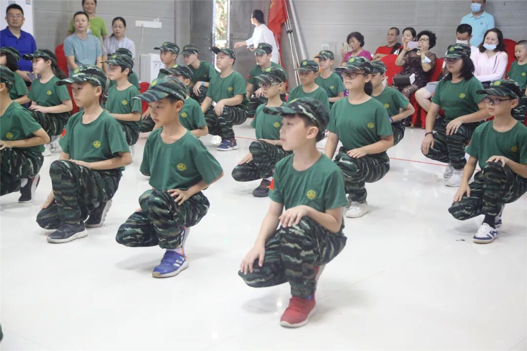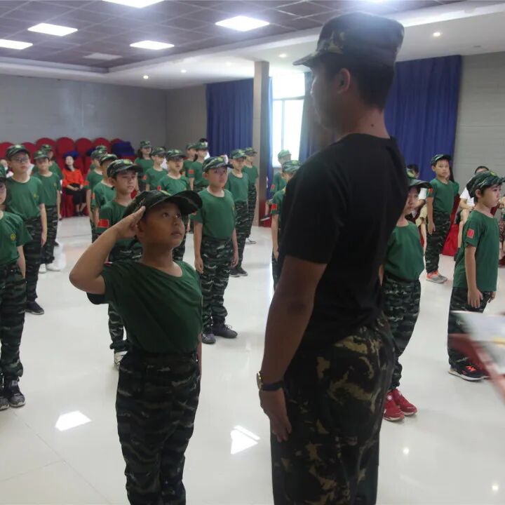 稍息、立正、蹲下、起立、敬礼、礼毕..随着教官响亮的口号,小兵们专注认真的向父母展示这几天的努力与坚持的成果!