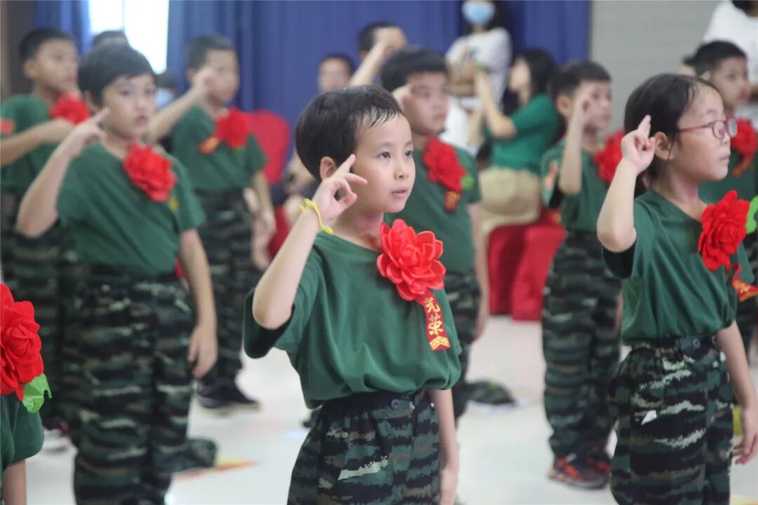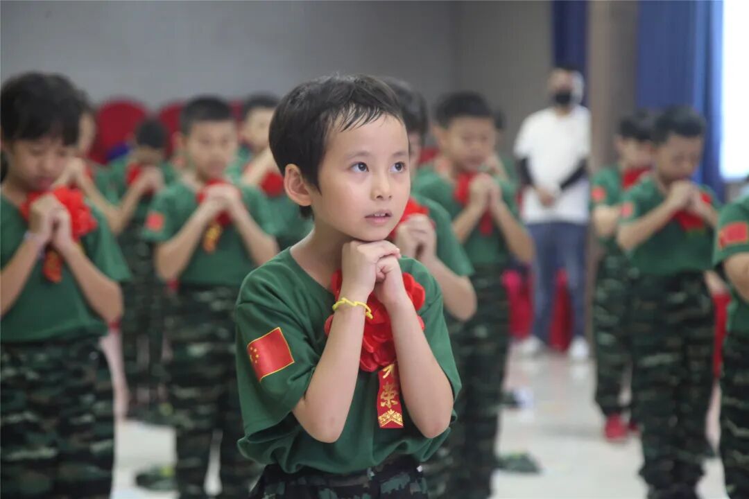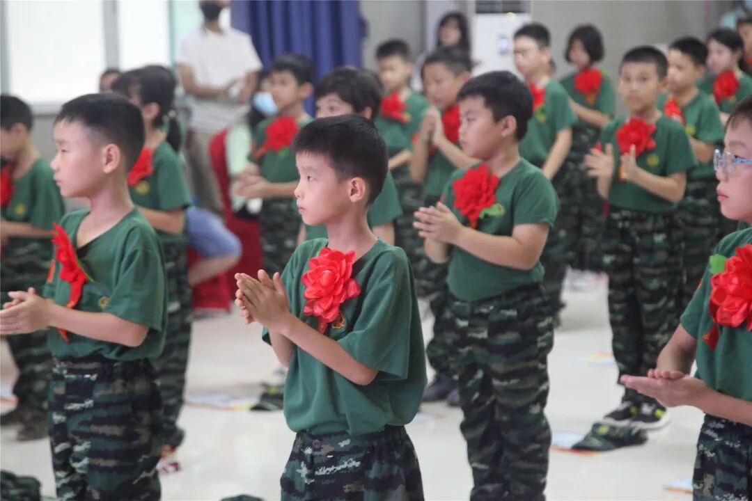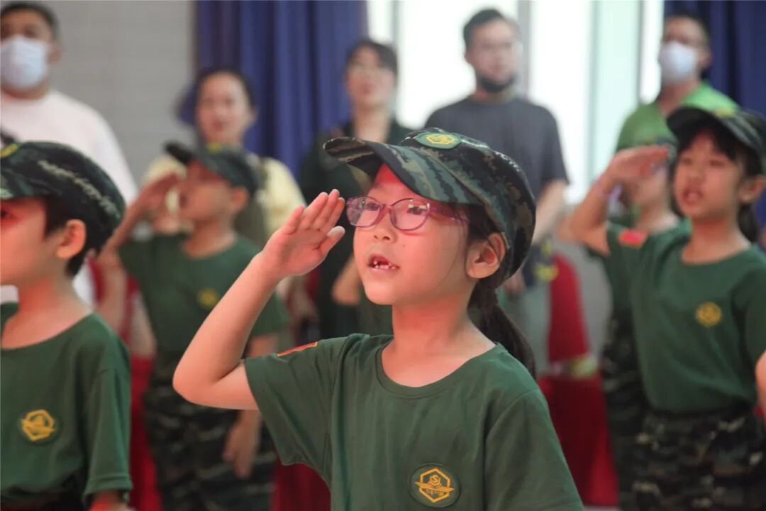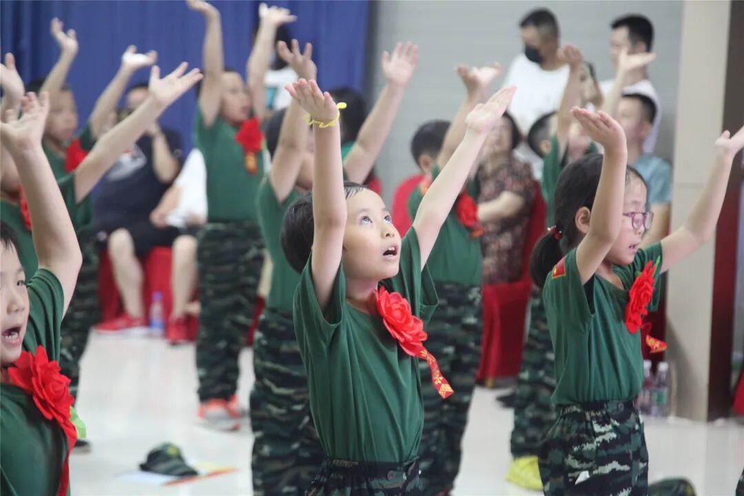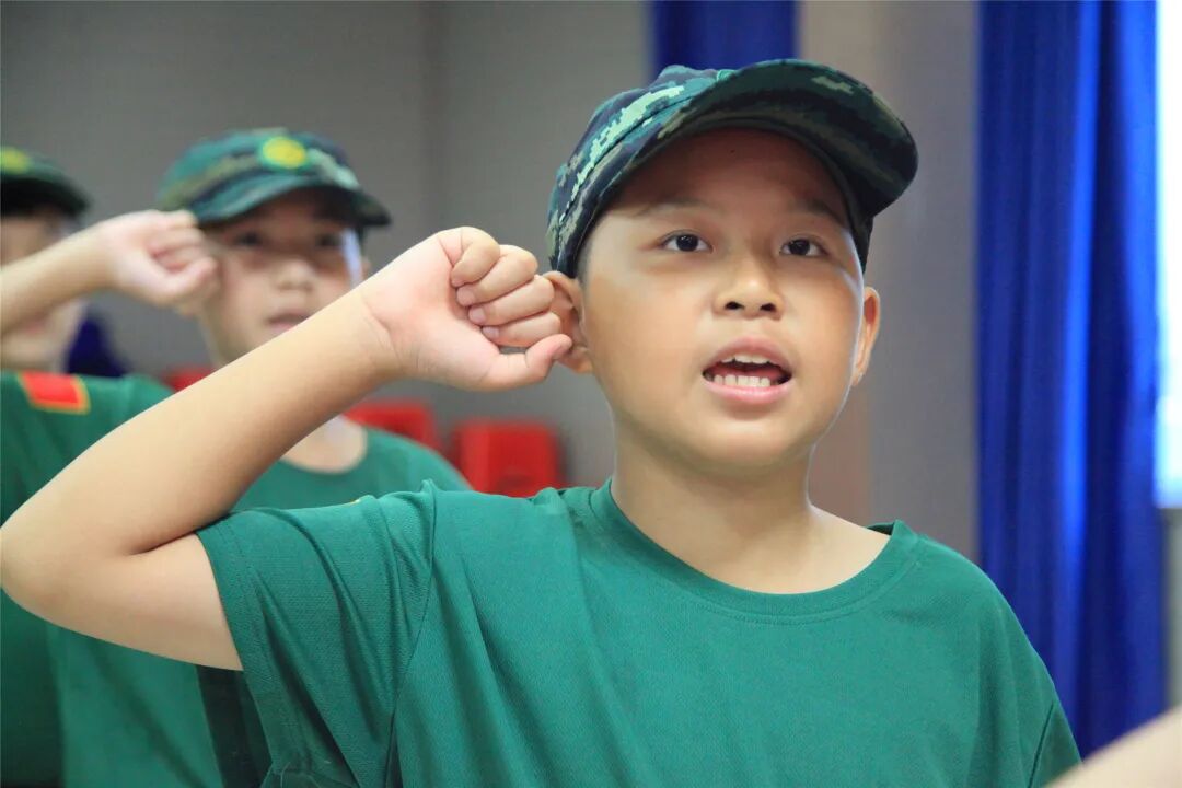 稍息、立正、蹲下、起立、敬礼、礼毕..随着教官响亮的口号,小兵们专注认真的向父母展示这几天的努力与坚持的成果!