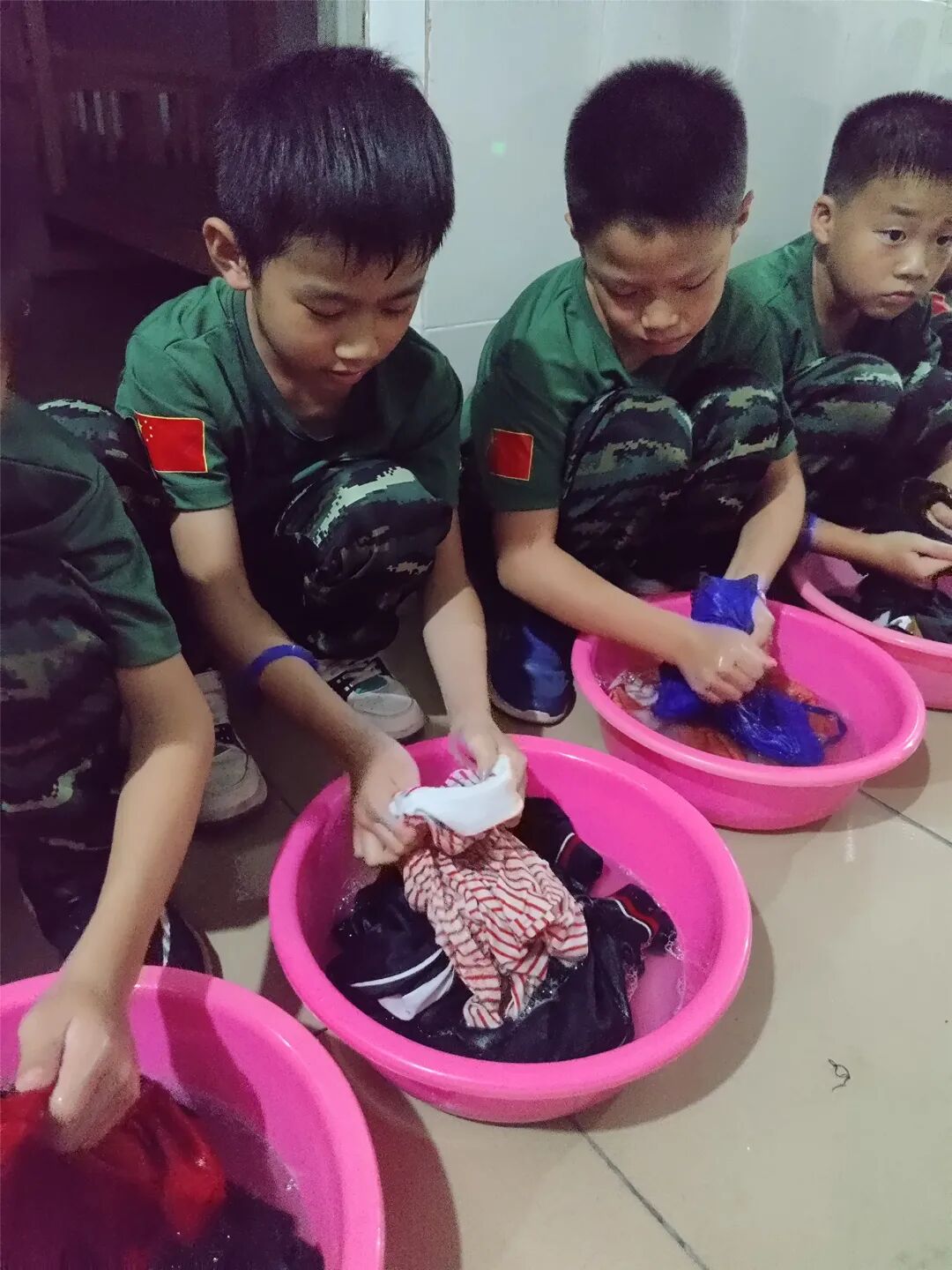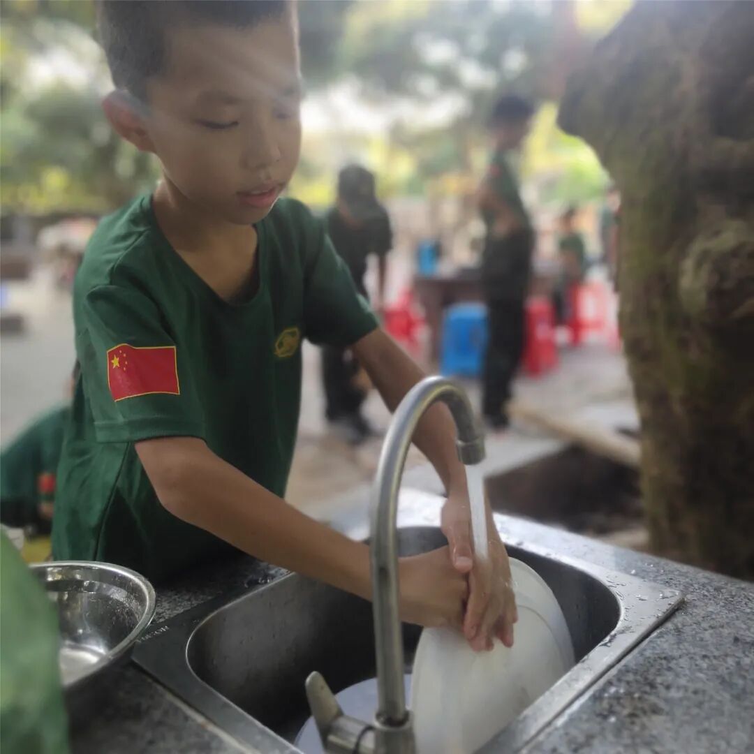 孩子们离开父母第一天,在营地和小伙伴一同度过宿舍生活。整理床铺、打扫卫生、清洗自己的衣服、用餐后收拾自己的餐具......