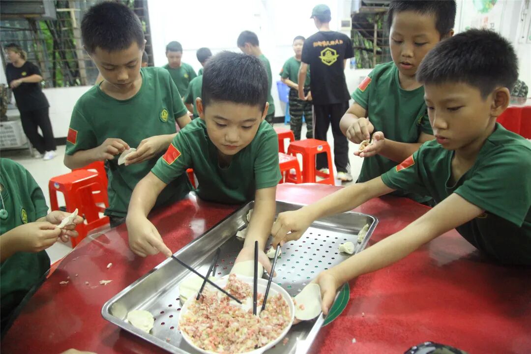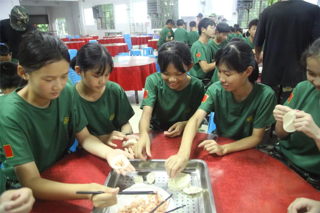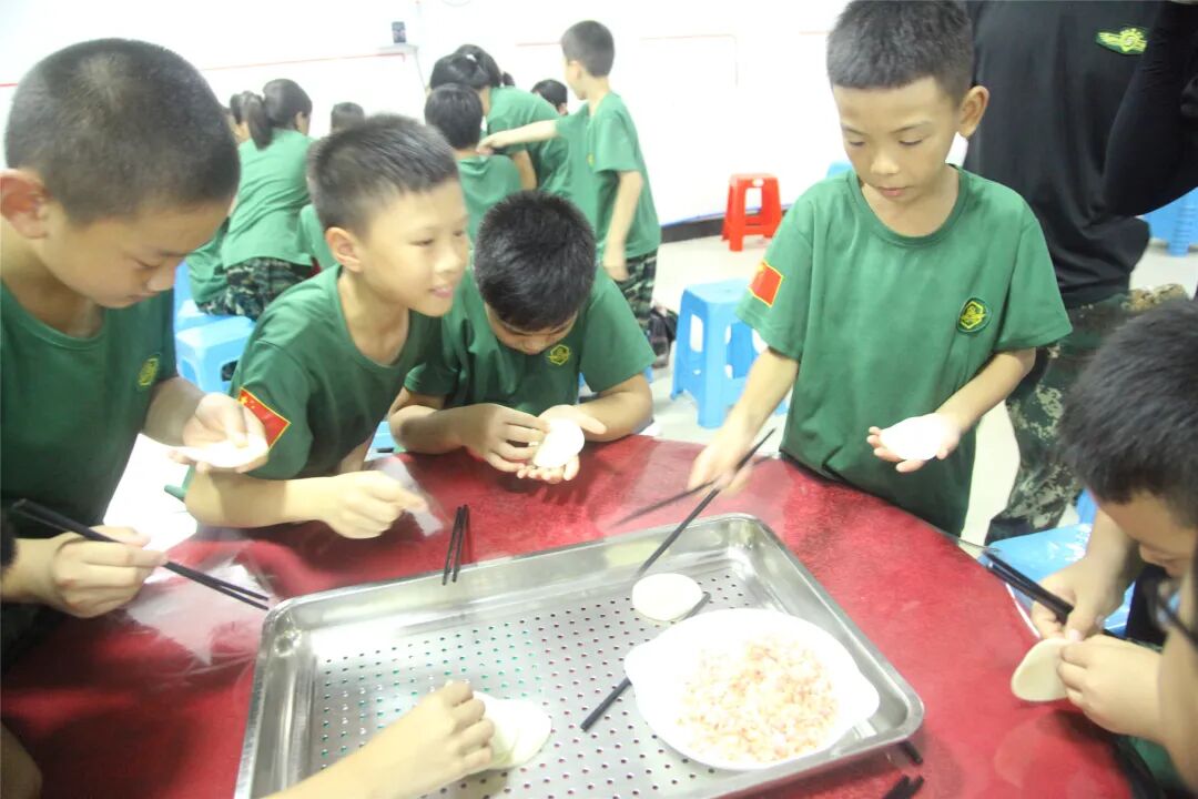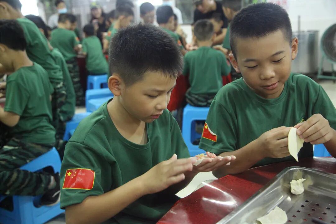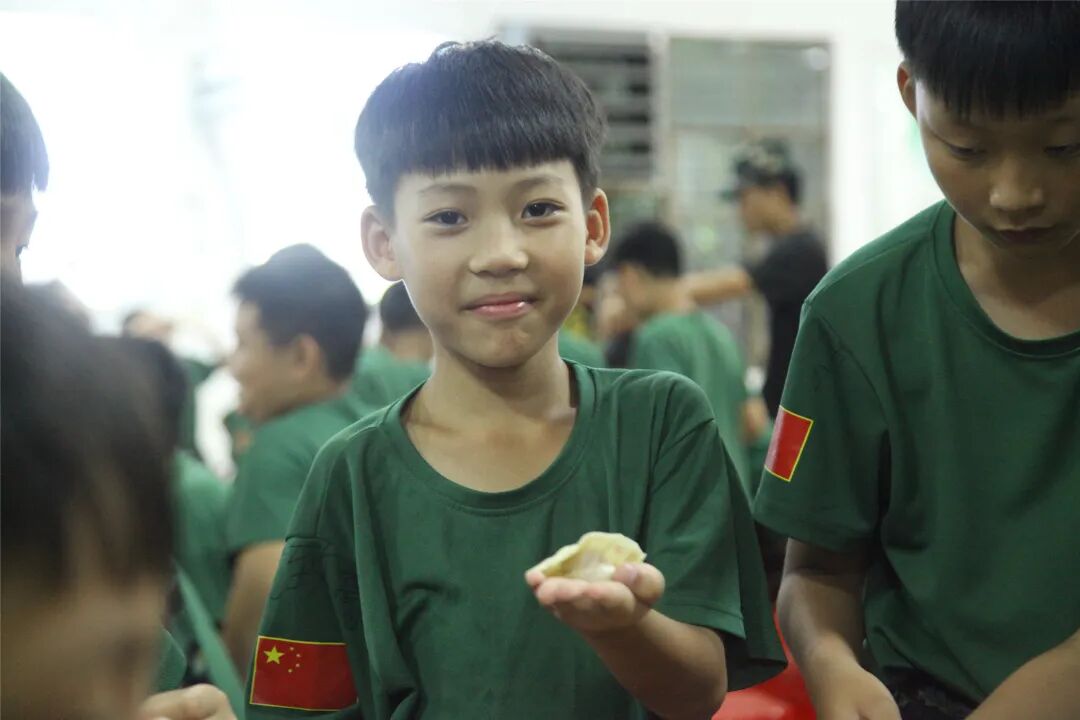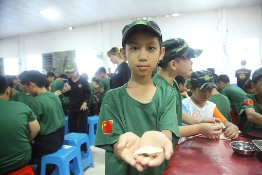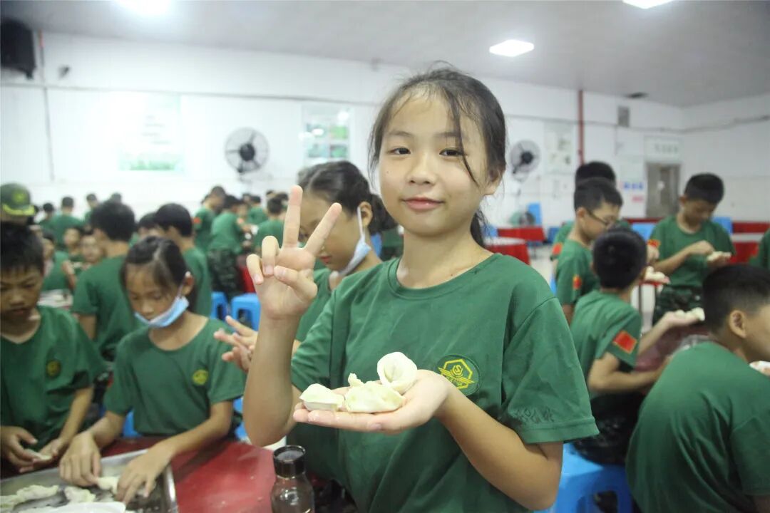 包饺子的同时相互进行经验心得交流,你这样包出来的饺子漂亮,她那样包出来饺子很有型,小兵们乐在其中,包得不亦悦乎。