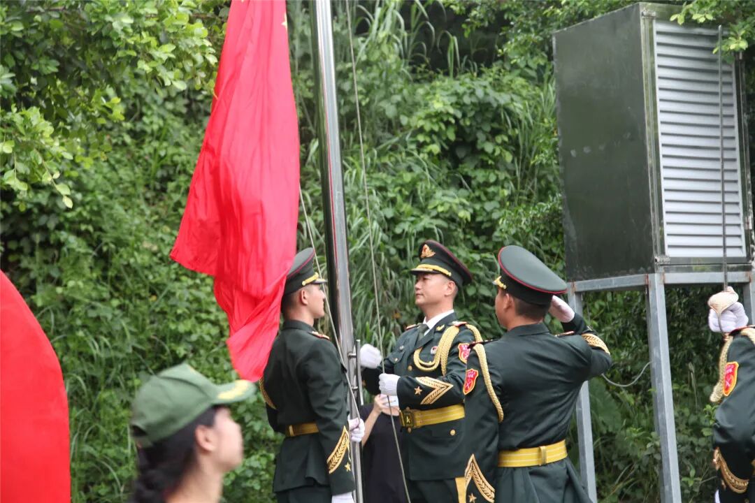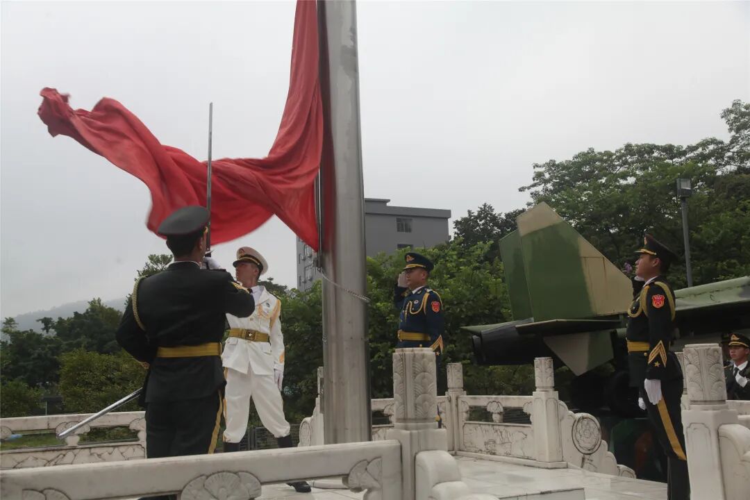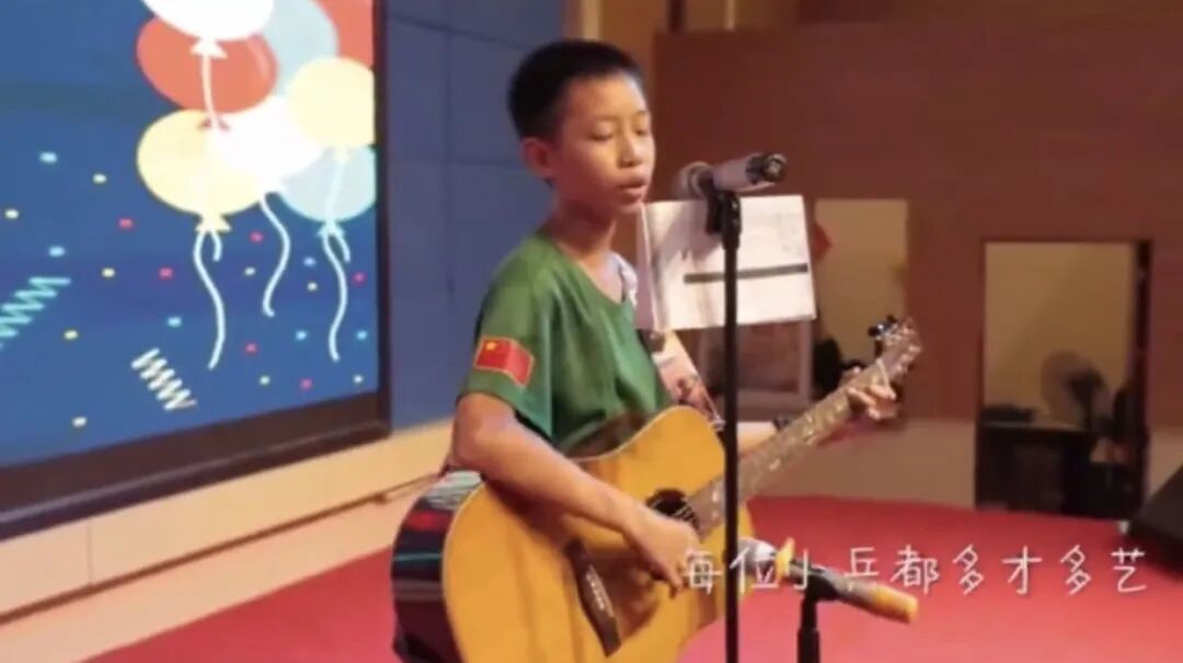 随着国歌音乐响起,小兵们昂首挺胸地随曲高歌。