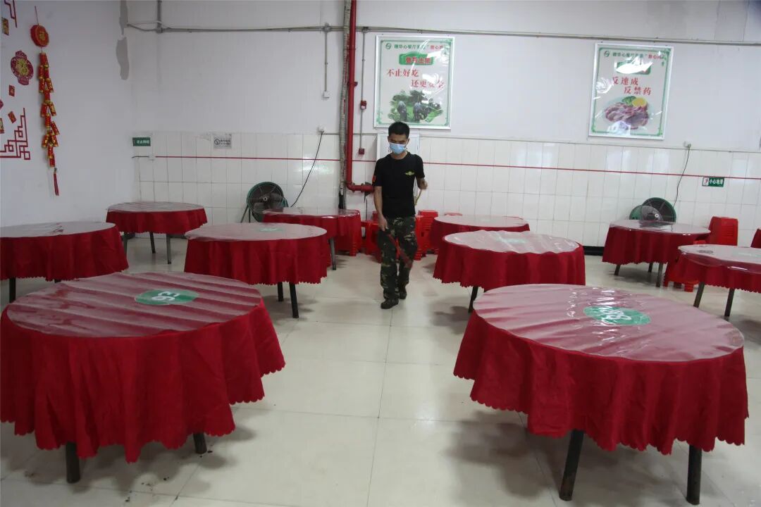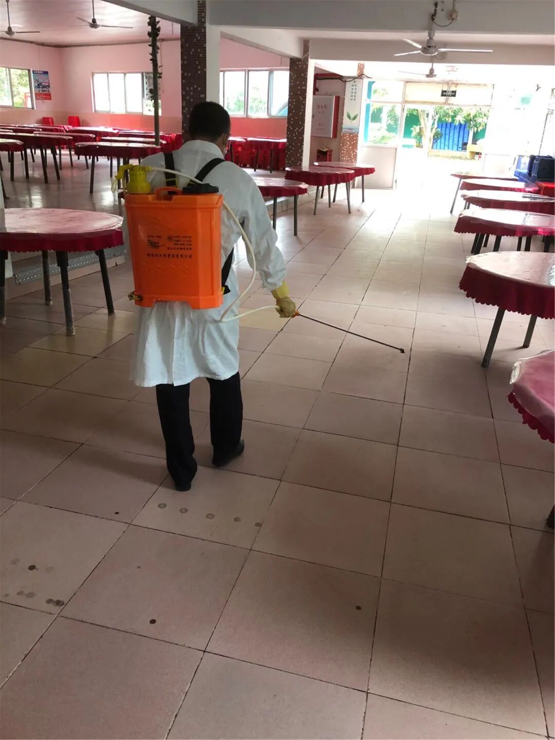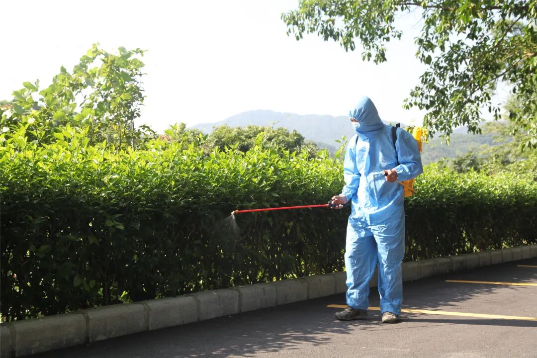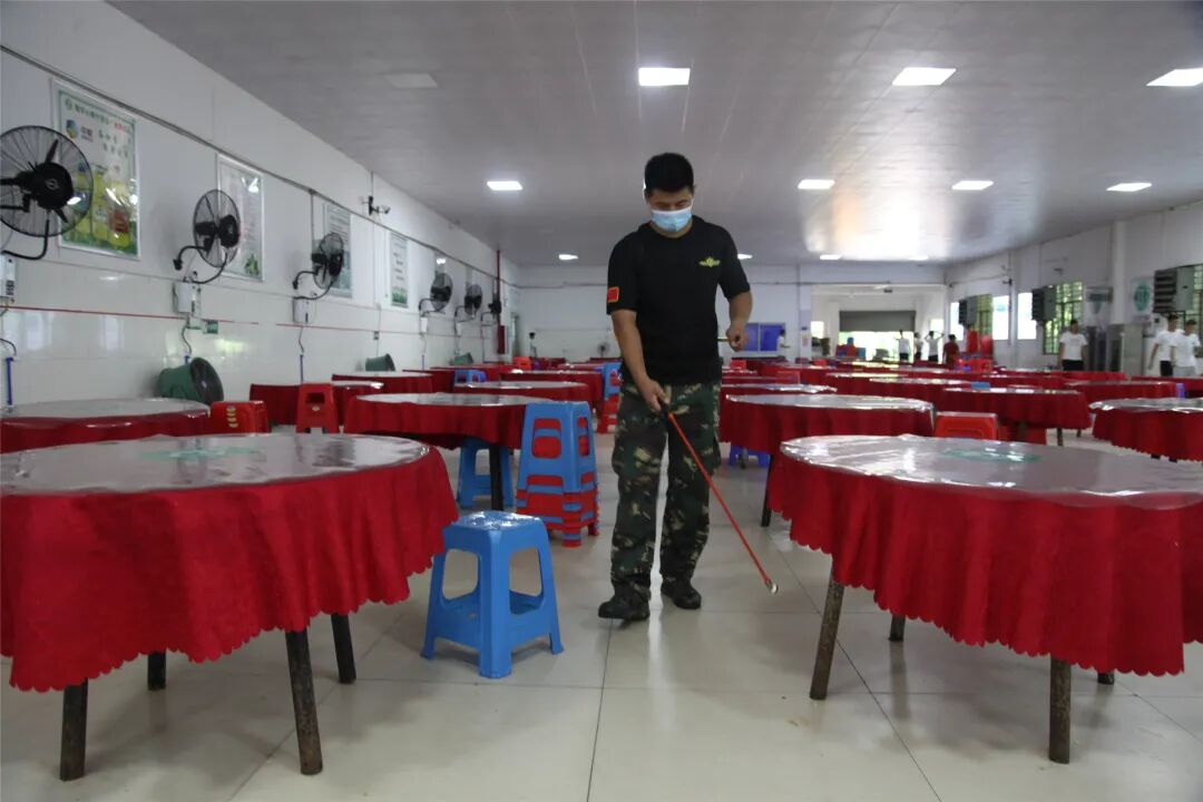 根据疫情防控工作要求,每天对营地培训场地、营员宿舍楼、餐厅等各个角落进行消毒净化处理。全面检查清洗空调、通风机装置,保持营区室内外卫生清洁,按照垃圾分类的相关要求,及时做好垃圾回收处理。
